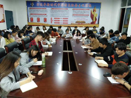 本网讯 人文外语系 黄彦斌 报道 3月20日晚,人文外语系党总支副书记史雪飞在1号教学楼党员活动室作了题为“学习贯彻2019年全国两会精神”的专题党课。刘华林、黄彦斌老师与系学生党员及入党积极分子近100人现场聆听讲座。会议由陶树金老师主持。