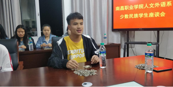 会上,少数民族学生代表一一发言,他们介绍了个人基本情况、上大学以来的主要收获和取得的成绩、学习生活中面临的问题。座谈交流中,他们深深感恩于南昌职业学院所提供的优美校园环境、完善的生活设施、有力的经济资助、优质的教学资源和良好的创新创业氛围;此外,学生代表们还演唱了民族歌曲,展示了各自民族的特色文化和新时代青年自信热情的风采。