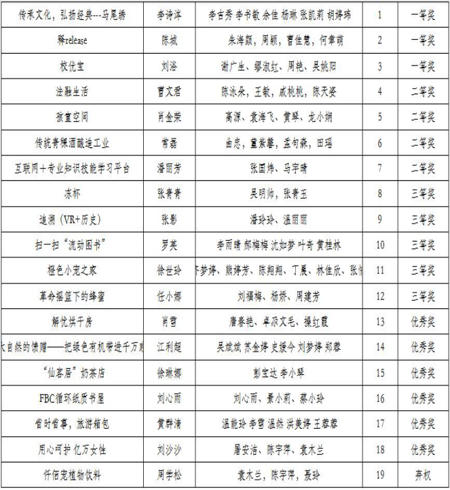 人文外语系“互联网+”大学生创新创业系赛结果