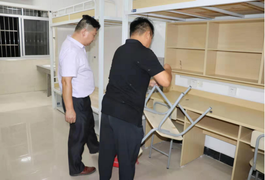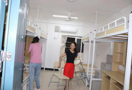 本网讯 人文外语系 陈成 报道 为了更好的开展迎接2019级新生的工作,给2019级新生们营造一个干净整洁的宿舍环境。9月10日,人文外语系全体学生干部和入党积极分子在党总支副书记史雪飞和新生辅导员陶树金老师的带领下,对新生宿舍进行了全面清扫并检查了宿舍的用电安全及桌椅的配备情况。