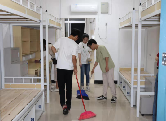 活动当天,我系全体学生干部和入党积极分子在一号教学楼门口集合,在带队老师简要说明本次活动的清扫任务和需要重点检查的事项后,大家分组下到具体的新生宿舍楼进行清扫。工作中,同学们分工明确,以饱满的热情投入到清扫工作中,不放过任何死角,一丁点垃圾都不放过,他们仔细清点宿舍桌椅并摆放整齐,细心检查宿舍里的各处用电是否使用正常,大家用自己的双手为即将入学的学弟学妹们营造一个更加舒适温馨的生活环境,相信经过他们的付出和努力,人文外语系的新生们一定会爱上这个干净、整洁、舒适而温馨的大家庭。