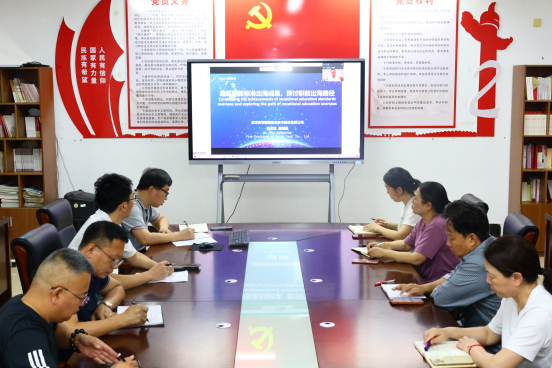 本网讯 通讯员王军 报道 根据《南昌职业大学2025年职业教育活动周工作方案》的安排,2025年5月15日,人文学院2025年职业教育活动周职教出海展示日活动暨职教标准出海研讨会在一号教学楼511室顺利开展。院领导李海峰、宁江、陶树金,教研室、科室负责人,师生代表参会,副院长张玉刚主持会议。