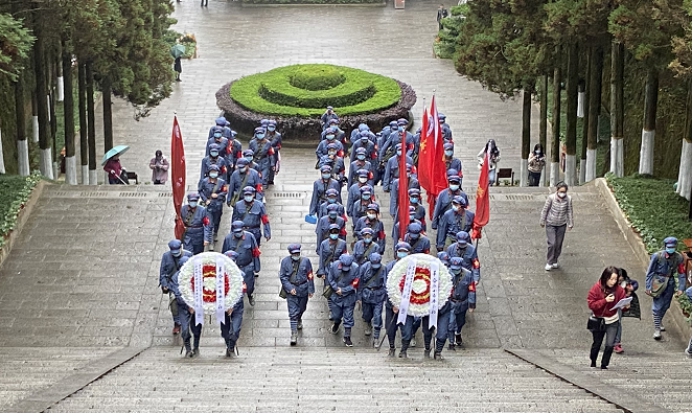 第二天的行程后,商务英语B2001班袁俊苗同学感慨地说:站在石阶上,看着山下的青年向革命烈士敬献的花圈。让我思绪飞回了那个战火纷飞的年代,革命烈士抛头颅、洒热血,为了新中国的成立奉献出了自己的生命。我们要向他们学习这种为理想信念奉献的态度和恒心,在自己的学习与生活中谱写一曲带有红军精神的青春之歌。