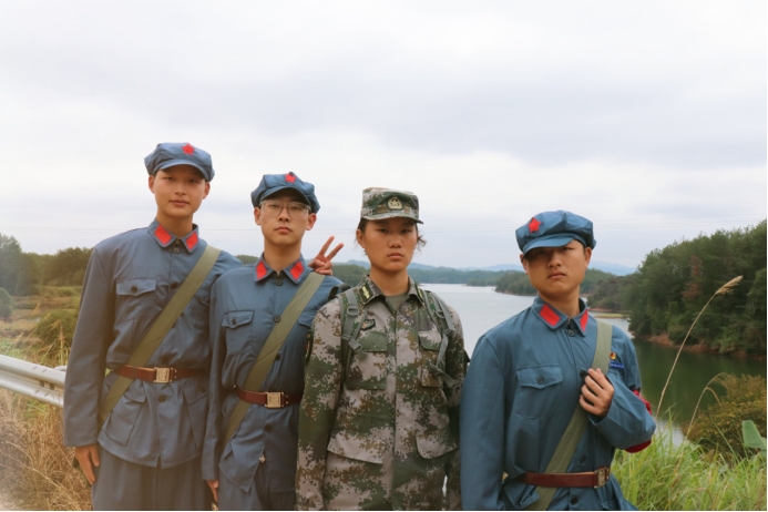本网讯 人文学院 报道 红军不怕远征难,万水千山只等闲。11月24日,人文学院8名师生沿着红军长征的足迹,跟随大部队持续推进“重走红军长征路,接力奋斗新时代”红色文化教育活动。大家从信丰九渡乡出发,经谭头水出江西,至广东南雄乌迳镇,再至广东南雄油山镇上朔村,薄暮抵达南雄大兰村扎营,全程40余公里。