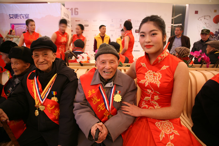 我院礼仪队学生与老兵爷爷合影
